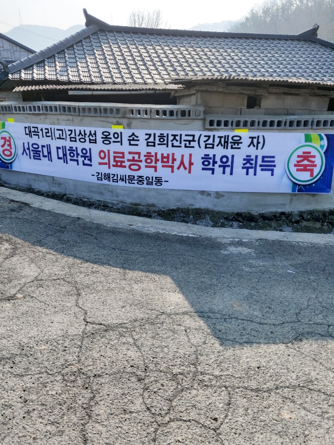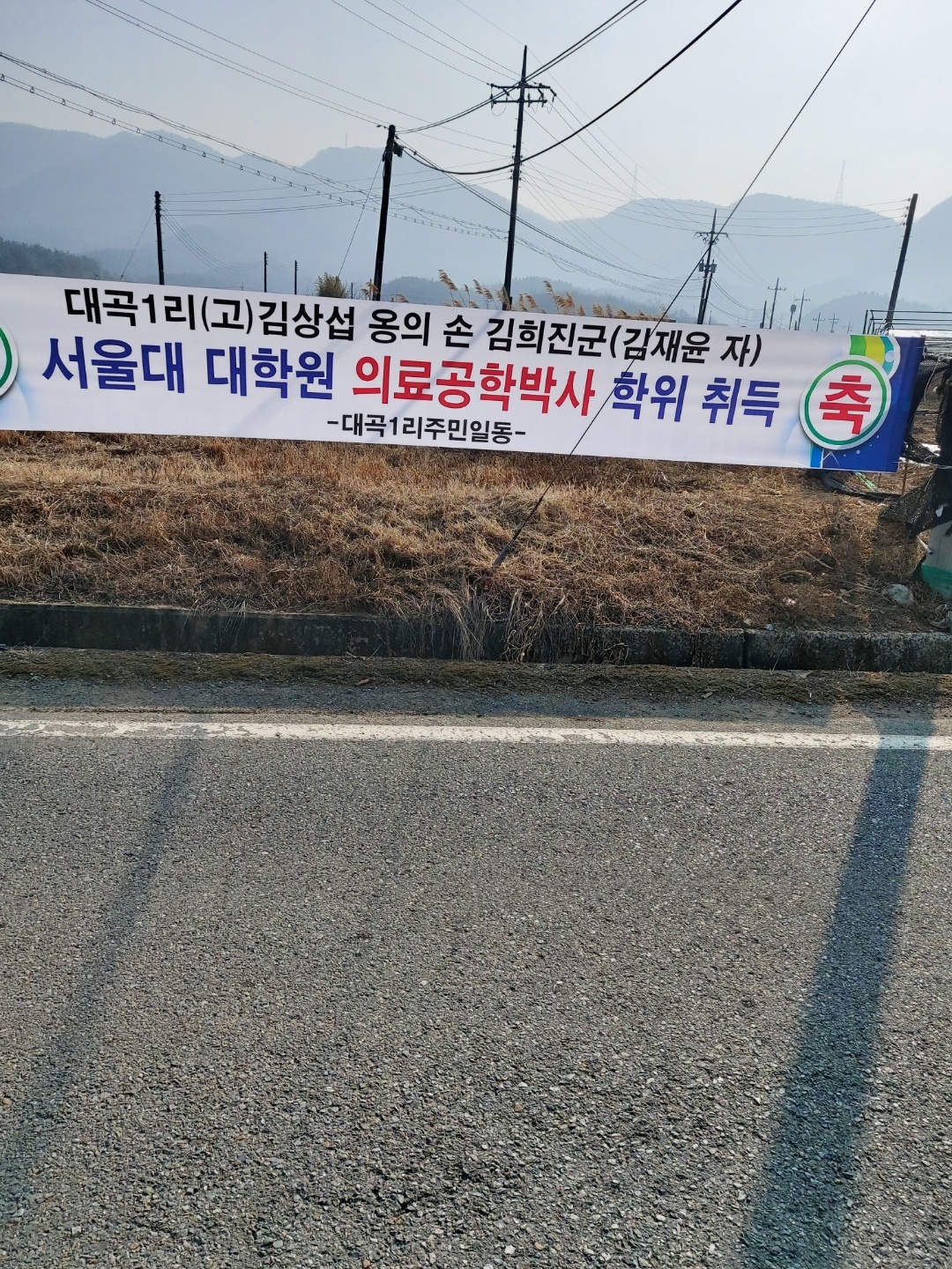 울아들 박사축하현수막2021년2월8일 ~2월15일 까지 작성자수선화|작성시간21.03.02|조회수203 목록 댓글 0 글자크기 작게가 글자크기 크게가 2021년 2월 27일 아버님산소참배2021년 2월28일 고향마을 현수막 수거육촌시숙님과 고종사촌시숙님울 희진이 박사학위 취득 현수막들선동에서1개ㆍ 좋은이웃사촌모임 3개청심회2개 다음검색 현재 게시글 추가 기능 열기 북마크 공유하기 신고 센터로 신고 댓글 댓글 0 댓글쓰기 댓글 리스트