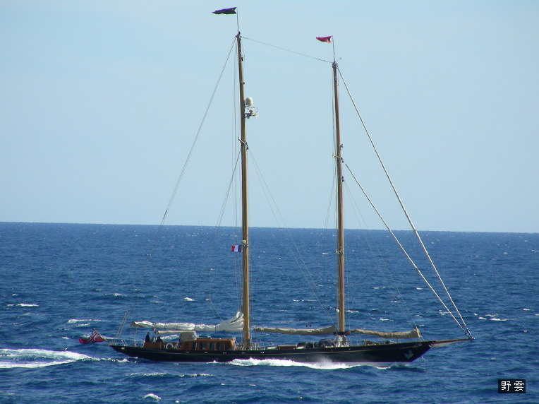 돛을 걷어 버리고 한가로이 지중해를 항해하는 요트...