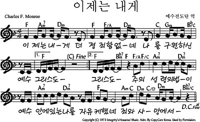 [스크랩] 이제는 내게 더 정죄함 없네 [예수전도단 라이브] 작성자우리주님|작성시간09.08.04|조회수482 목록 댓글 0 글자크기 작게가 글자크기 크게가 이제는내게 / 이제는내게더정죄함없네 악보 이제는 내게 더 정죄함 없네 나를 구원하신 예수 그리스도 이제는 내게 더 정죄함 없네 나를 구원하신 예수 그리스도 주의 성령의 법이 예수 안에 있는 나를 자유케 했네 죄와 사망에서 이제는 내게 더 정죄함 없네 나를 구원하신 예수 그리스도 ** 가사입력 : 오직주만의 CrOsS 님 다음검색 스크랩 원문 : 오직 주만 현재 게시글 추가 기능 열기 북마크 공유하기 신고 센터로 신고 댓글 댓글 0 댓글쓰기 답글쓰기 댓글 리스트
