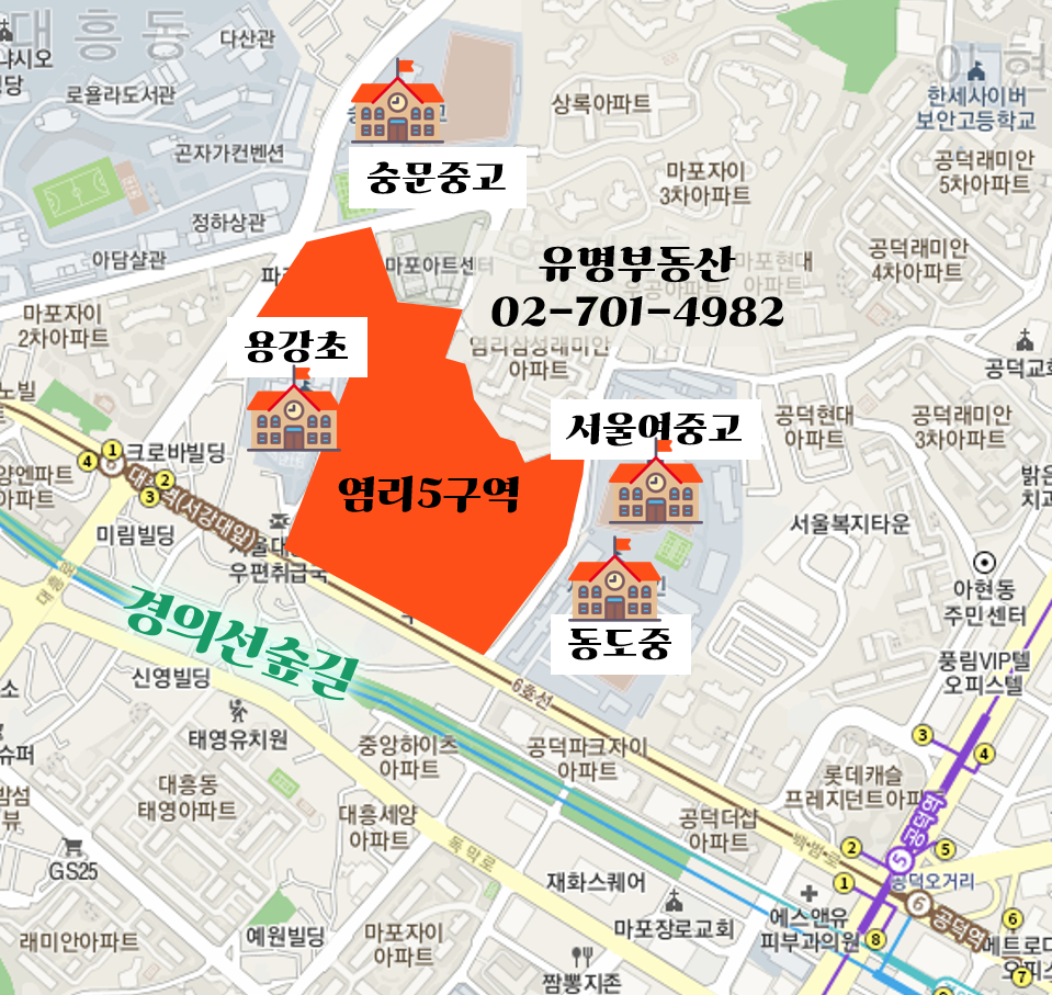 학세권과 역세권 숲세권을 고루 갖춘 염리5구역은