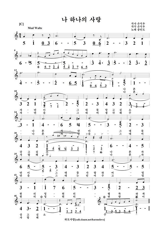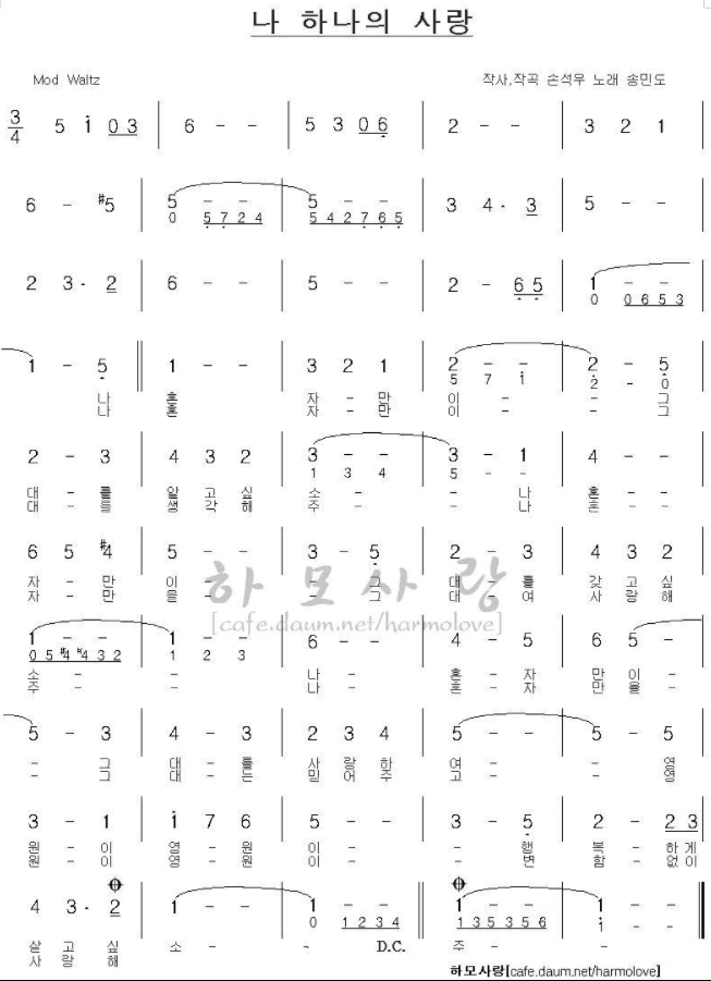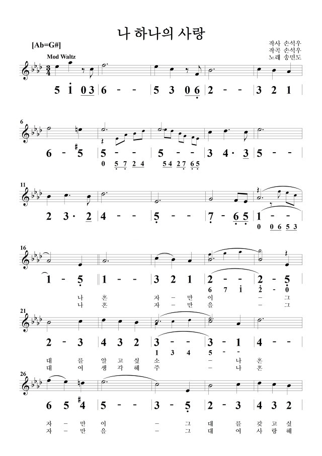 " 나하나의사랑 (손석우 곡) " / 노래 송민도