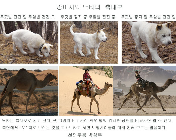 아래는 측대보로만 걷고 뛰는 낙타의 사진을 참고로 배열하였다.