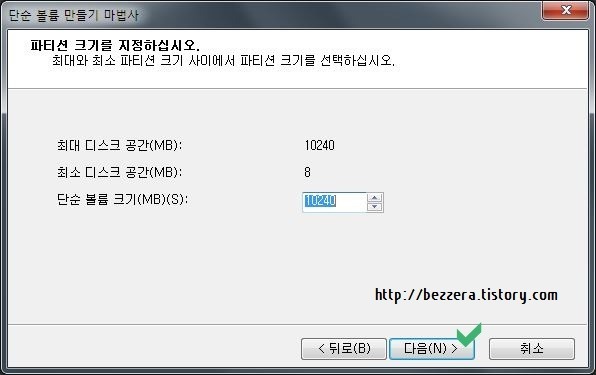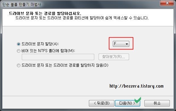 특별히 원하는 드라이브 문자가 없으면 그냥 '다음'을 누르세요.