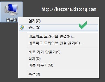 ▲ 자, 파티션을 나누던, 합치던 먼저 내컴퓨터의 관리로 들어갑니다.