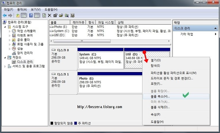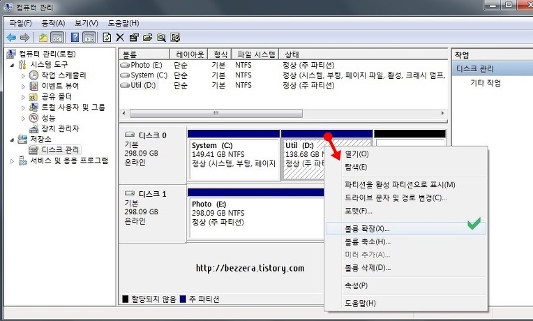 윈도우7,8 하드디스크(HDD) 파티션 나누기 & 합치기