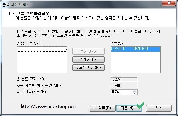 ▲ 합칠 용량을 지정하고 다음을 누릅니다.