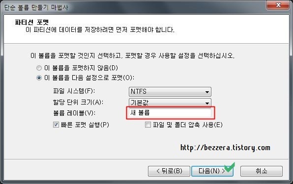 ▲ 볼륨 레이블을 지정해 주고 다음을 눌릅니다.