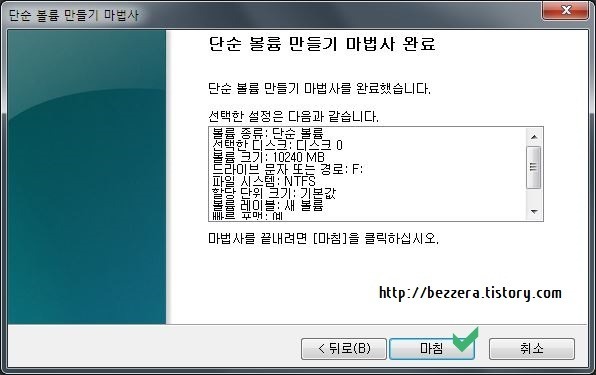 ▲ 마침을 누르면 이제 새볼륨이 완성이 되었습니다.