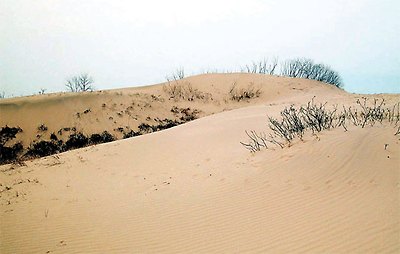 한 방향에서 강하게 불어오는 바람의 작용으로 형성되는 초승달 모양의 사구.