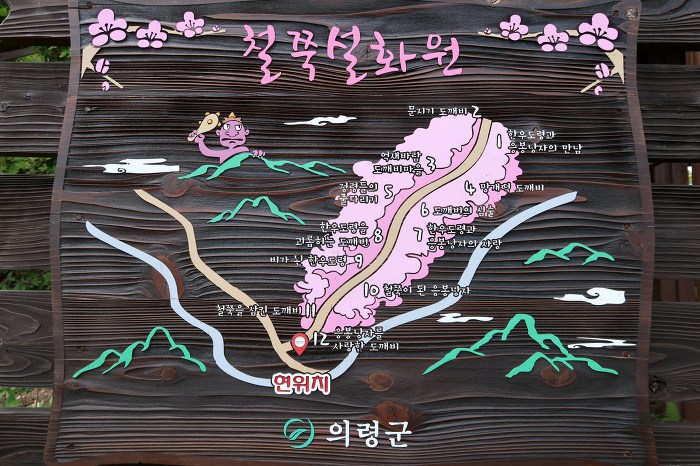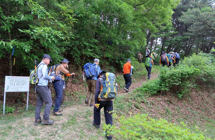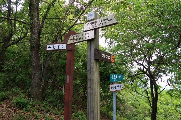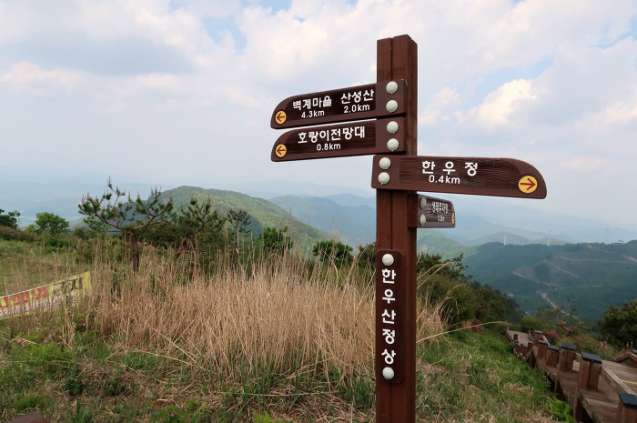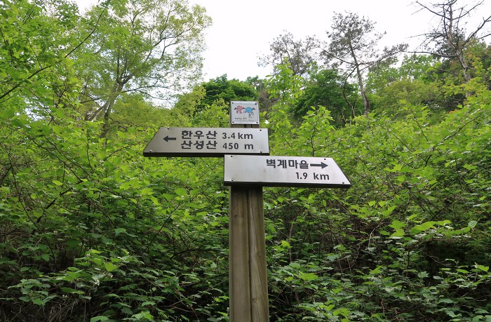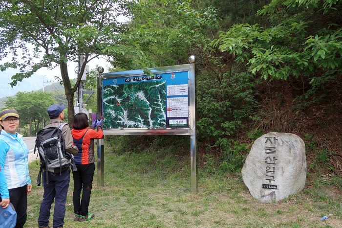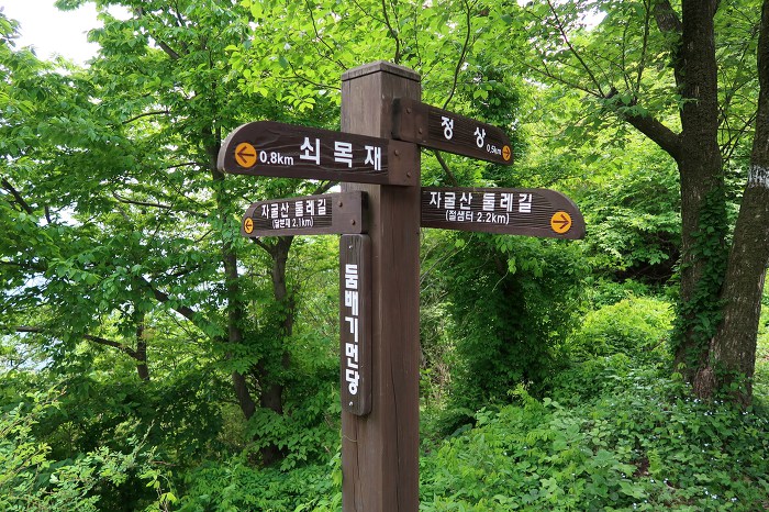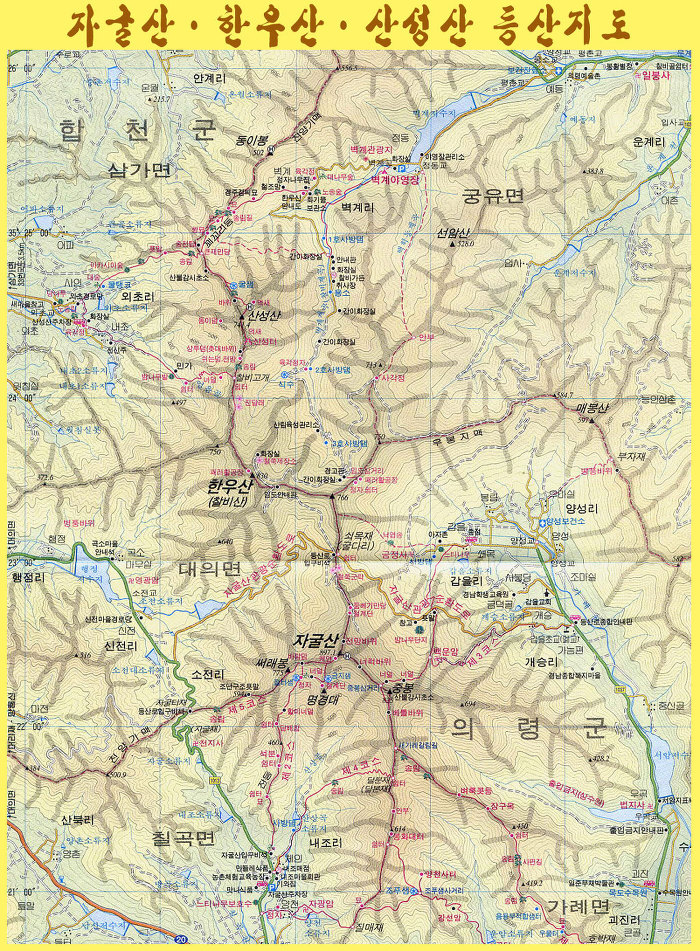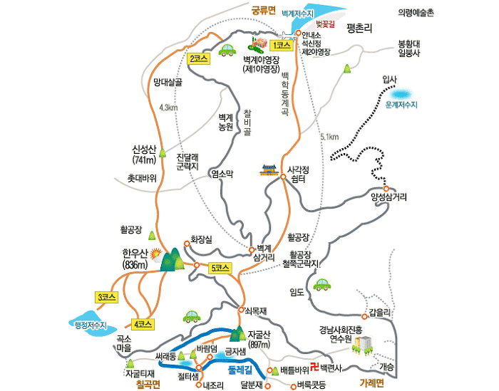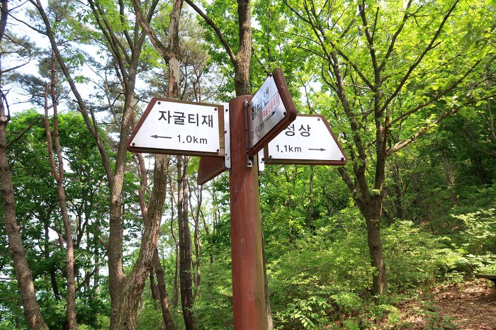 코 스 ; 자굴티재-바람덤-자굴산-쇠목재-한우정-한우산-찰비고개-산성산-외초재(큰재만당)-벽계마을
