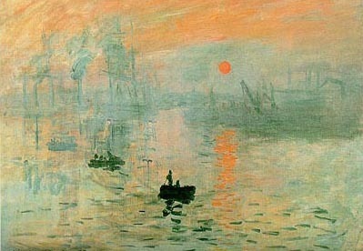 모네는 1872년 르아브르의 해돋이 풍경을 그렸다. 「해돋이」라고 불리기도 하고 「인상」이라고도 불려지는 이 작품은 1874년 인상주의 그룹의 제1회 전시회에 출품되었는데 모네의 출품작이 너무 많았다. 이때 작품도록을 만들던 르노와르의 형제인 에드몽이 비슷비슷한 작품 이름에 대해 투털거리자 모네가 즉석에서 「인상」이라고 제목을 지어주어 그룹의 이름이 <인상주의>로 불려지게 한 작품이다. 해돋이 때 강렬한 햇빛의 실루엣에 묻힌 배가 있는 바다 풍경을 그의 창가에서 그린 것이지만, 모네는 자신의 마음 속에서 느끼는 감정을 그렸다. 실제의 풍경이 아닌 느낌, 즉 ‘인상’을 이미지화 했기 때문에 제목을 즉석에서 「인상」이라고 정했던 것이다. 이러한 모네의 그림 제작방법은 인상주의의 가장 큰 특징을 그대로 보여준다. 빛에 의해 발견된 고요하고 마술적인 순간을 포착하고 있는 이 그림은 사물들이 분간되지 않고 이로인해 양식적인 특성이 없다는 혹평을 받는다. 그러나 새로운 예술시대를 연 일군의 젊은 작가들의 작품은 살롱을 중심으로 전개되는 낡은 예술적 관성에 젖은 기존의 프랑스 화단에서 이단으로 취급되었다.