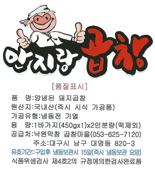 *우리는 대구 안지랑 곱창골목에서 곱창 막창 구이 식당을 하고 있지요^^*
