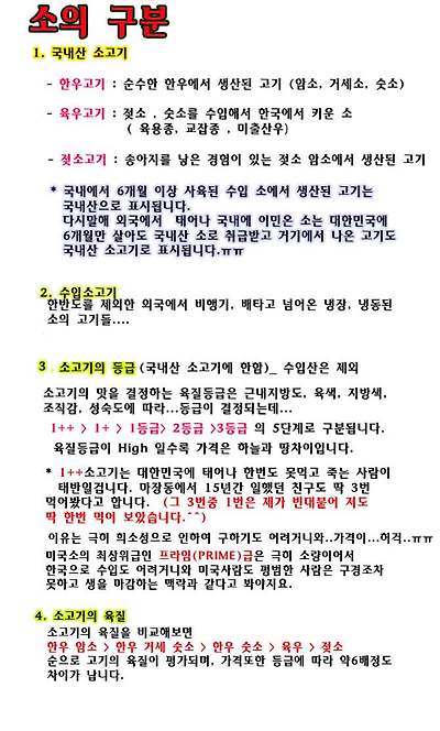 간략하게 여기서 소에 관련된 사항과 등급을 살펴보면