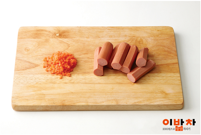 1. 당근은 잘게 다지고, 프랑크소시지는 반으로 썰고,