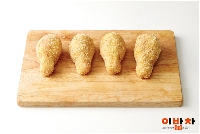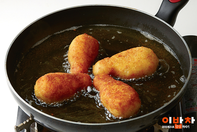 6. 180℃로 달군 식용유(2 1/2컵)에 닭다리크로켓을 노릇하게 튀겨 마무리.