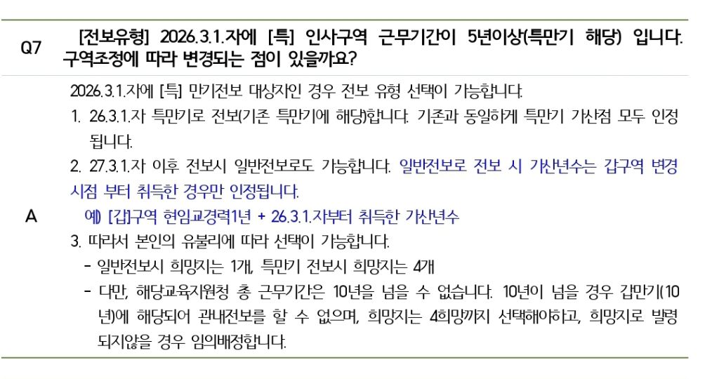 근무년수가 5년미만이라도 26.3.1에 관외이동하는 사람은 특만기전보인가요?ㅜㅜ