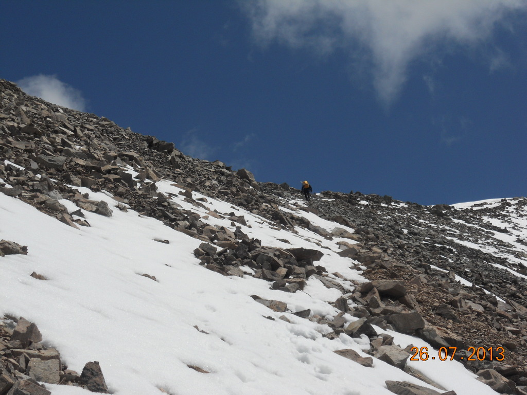 우치텔 정상부근 설사면 우치텔 정상 직하 우치텔 정상에서 본 악사이 빙하 우치텔 정상