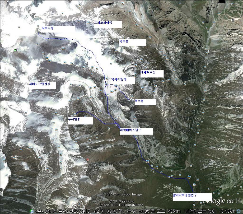 텐산산맥 악사이 산군(알라차르국립공원) 트레킹봉 및 꼬로나봉 등정