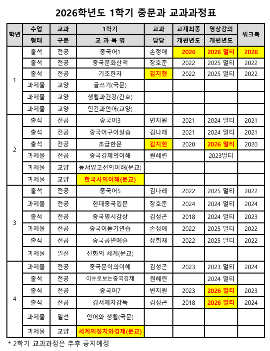 2026학년도 1학기 중어중문하과 교과과정표 작성자김치관(24-3)|작성시간25.12.17|조회수12 목록 댓글 0 글자크기 작게가 글자크기 크게가 2026학년도 1학기 중문과 교과과정표.pdf65.61KB 첨부파일첨부된 파일이 3개 있습니다. png 파일 2.png 다운로드 png 파일 3.png 다운로드 pdf 파일 2026학년도 1학기 중문과 교과과정표.pdf 다운로드 다음검색 현재 게시글 추가 기능 열기 북마크 신고 센터로 신고 댓글 댓글 0 댓글쓰기 답글쓰기 댓글 리스트