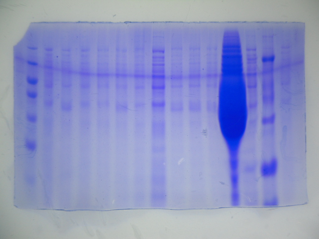 @ Special sample ; 정제 완료된 Hsp33, 여러 size의 단백질을 섞어놓은 sample, large culture 후 sonication 전, 후 sample