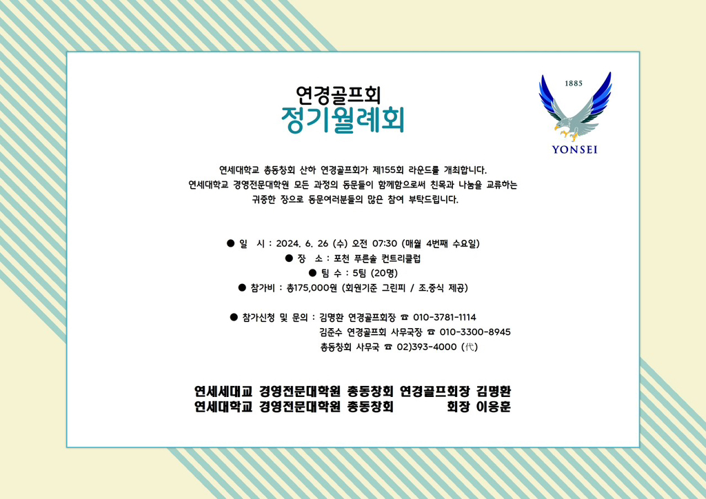 연세대학교 연경골프회 제155회 정시월례회 안내 / 사무국 2024.06.26. 작성자Chaum 차용환|작성시간24.06.05|조회수9 목록 댓글 0 글자크기 작게가 글자크기 크게가 ◆ 연경골프회 제155회 정기월례회 개최 ◆ 다음검색 현재 게시글 추가 기능 열기 북마크 공유하기 신고 센터로 신고 댓글 댓글 0 댓글쓰기 답글쓰기 댓글 리스트