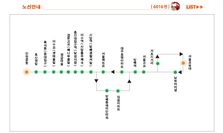 6016번 노선안내(인천공항<->흑석동<->이수교<->사당역<->서울고교<->서울교대<->남부터미널 작성자mymin21|작성시간10.11.10|조회수1,209 목록 댓글 0 글자크기 작게가 글자크기 크게가 다음검색 현재 게시글 추가 기능 열기 북마크 공유하기 신고 센터로 신고 댓글 댓글 0 댓글쓰기 답글쓰기 댓글 리스트
