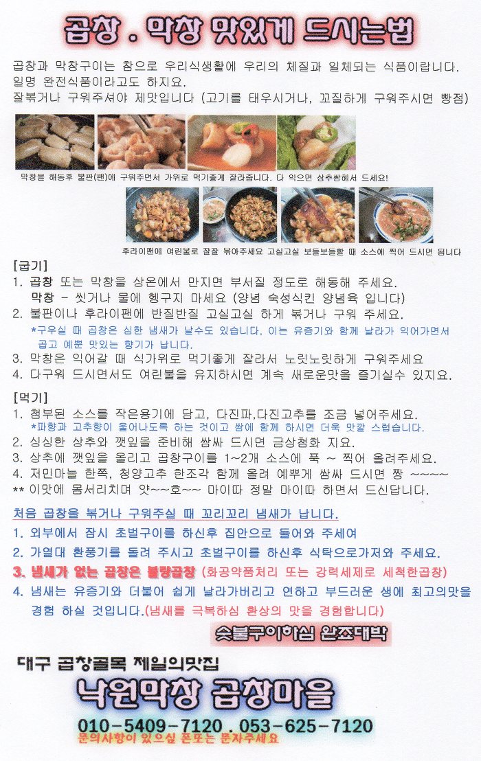 훈훈하고 부드러운 곱창요리 <-------- 대박 ㅋㅋ