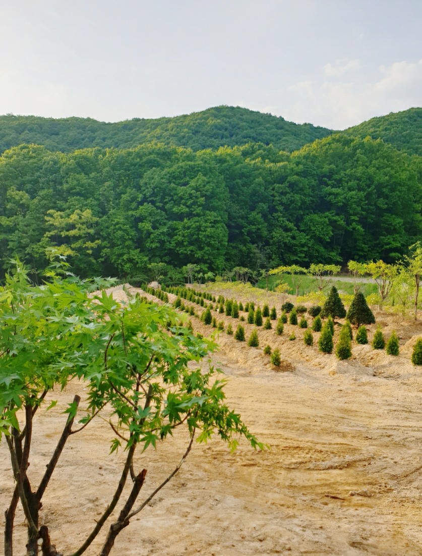 5월에 금리마을펜션 솔숲펜션 뒤로 펼쳐친 땅에 묘목을 심었어요.