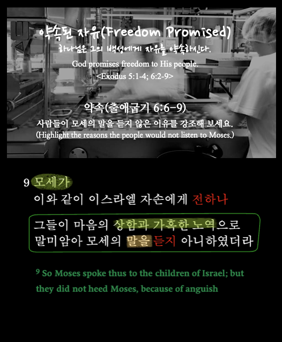 하나님이 모세를 통해 전하신 약속을 듣지 않았다.