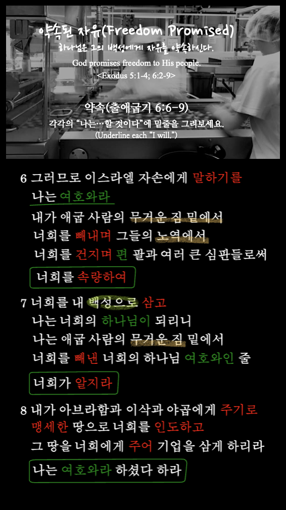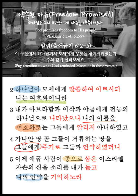 하나님은 그 약속을 이행하고 계셨다. 하나님께서는 이스라엘 백성이 고통받고 있다는 것을 아셨고,