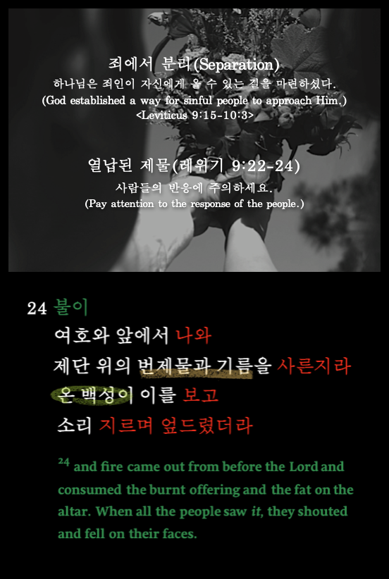 이것은 하나님의 독특하신 면을 드러냈다. 하나님 앞에서 제물을 태운다는 것은
