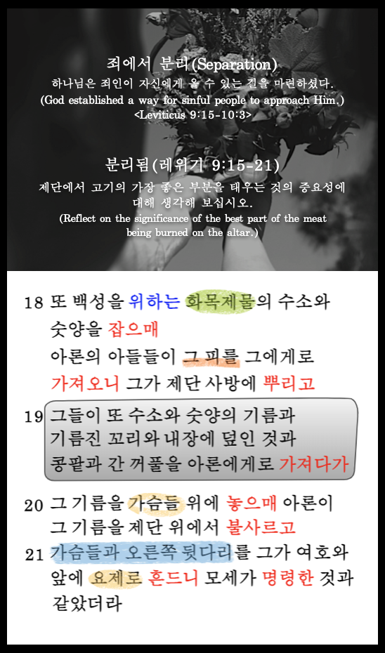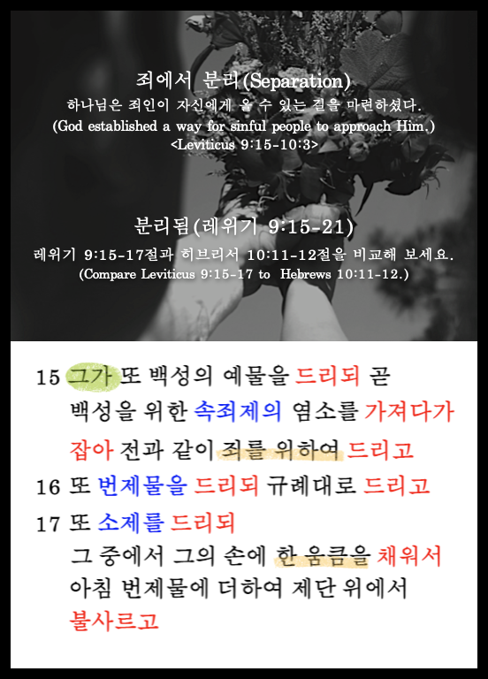 죄는 항상 하나님과 사람을 분리시키기 때문에 이 제물은 필수적이다.