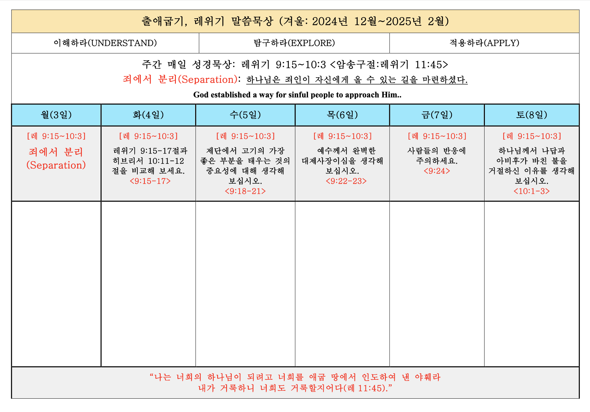 하나님의 위엄과 영광을 더욱 더 잘 알고 살 수 있도록 기도하세요.>