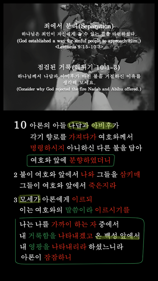 특권을 받았다. 나답과 아비후가 하나님이 명령하지 아니하신 불을 분향한 이유는 무엇인가?