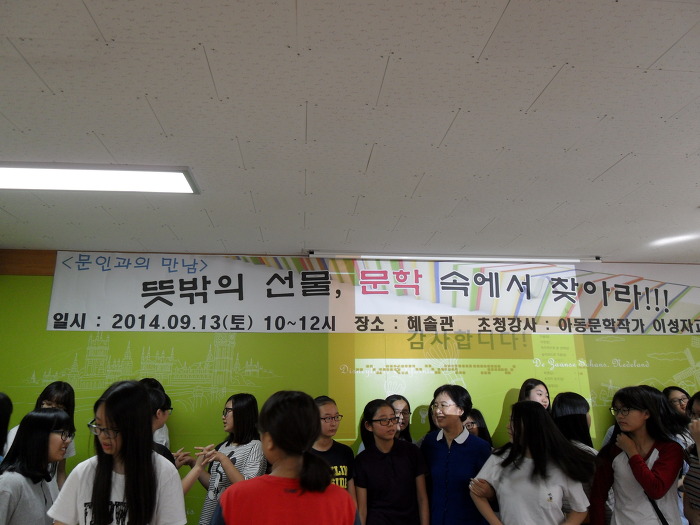 목포 혜인여자중학교 작성자이성자|작성시간14.09.13|조회수490 목록 댓글 3 글자크기 작게가 글자크기 크게가 작가초청 제목 : 뜻밖의 선물, 문학 속에서 찾아라 장소 : 목포혜인여자중학교 일시 : 2014년 9월 13일 토요일 오전 10~ 다음검색 현재 게시글 추가 기능 열기 북마크 공유하기 신고 센터로 신고 댓글 댓글 3 댓글쓰기 댓글 리스트 작성자이성자 작성자 본인 여부 작성자 | 작성시간 14.09.13 교장선생님, 교감 선생님, 담당 선생님! 좋은 시간 마련해 주셔서 감사합니다.예의 바르고 다정한 학생들!순수한 그 모습 잊지 못할 것 같아요. 답댓글 작성자환타지 | 작성시간 14.09.14 목포 유달산 바로 아래 자리 잡은 혜인학교 다녀오셨군요.속닥속닥사춘기 소녀들의 속삭임이 들리는듯 합니다. 작성자이성자 작성자 본인 여부 작성자 | 작성시간 14.09.14 주변환경이 참 아름답더이다. 댓글 전체보기