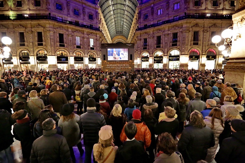 "라 스칼라좌" 극장 은 당시 밀라노를 비롯한 주변 유럽 제국을 통치하였던 여황제 격인 오스트리아의 마리아 테레지아의 지시 때문에 건축되었다. 그러한 배경에는 마리아 테레지아 그녀는 하이든의 천지창조에서 솔로(소프라노)로 출연 할 만큼 음악을 무척 사랑하는 여인이었다. 그런데 묘하게도 이탈리아 국민이 사랑하는 이 곡의 초연의 장소가 오스트리아 女帝가 세운 1842년 밀라노 라 스칼라좌극장(1778년 8월 3일 개관)인 것이 아이러니하다.