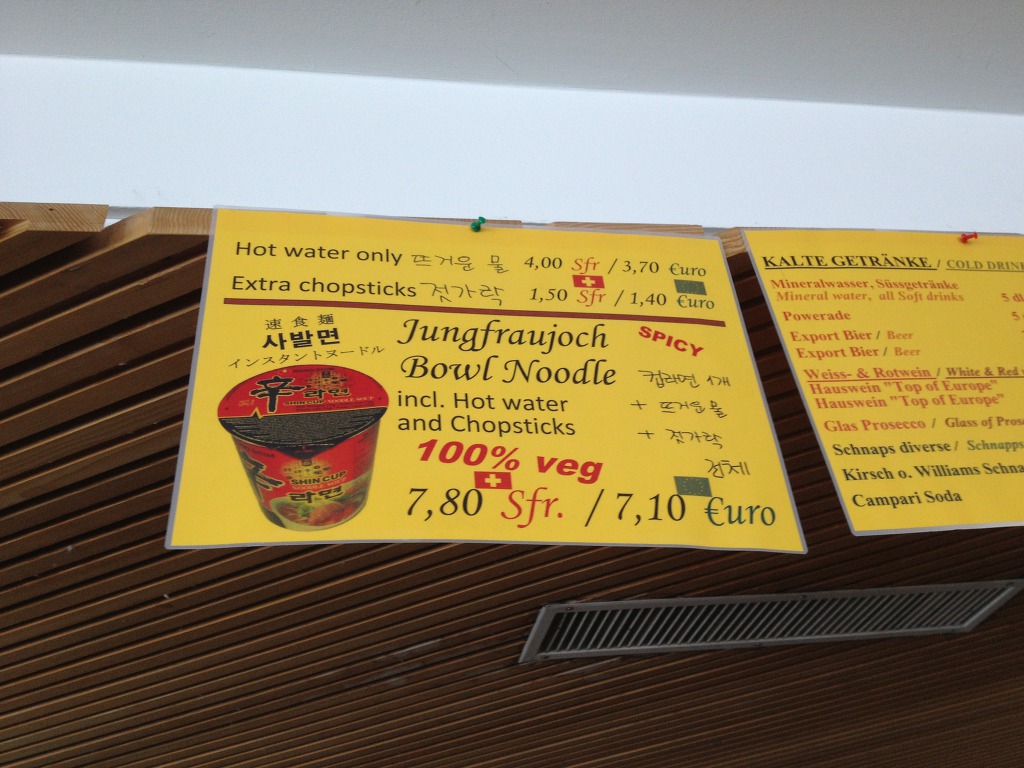 신기한 것은 산 정상에는 사발면을 Hot water와 Chopsticks을 포함해서 7.80 SFR.(7.10 URI)에 판매를 하고 있음을 보면 우리나라 사람들이 이곳을 즐겨 찾는다는 것을 단적으로 증명이 된다.