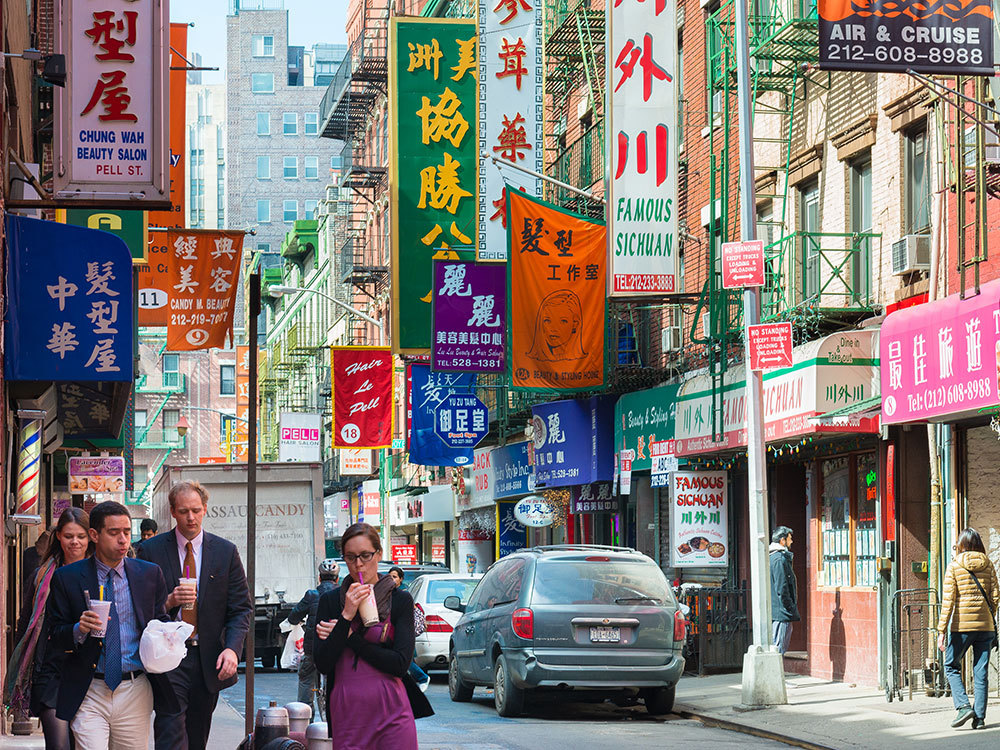19세기 중반 미국에서 대륙 횡단 철도 공사 때 태평양을 건너 일하러 온 중국인들이 거주하기 시작하면서 형성된 차이나타운은 지금도 여전히 당시의 전통과 관습을 지키며 점점 더 그 영역을 넓혀 가고 있다. 영어를 찾아보기가 힘든 중국식 간판에 수많은 관광객과 현지인들로 좁은 미로와 같은 길은 끝없이 이어진다. 뉴욕의 맨해튼 안에 차이나타운만큼 저렴한 가격에 풍성한 먹거리를 즐길 수 있는 곳이 또 있을까 싶다. 보통 5달러 내외면 한 끼 식사를 제대로 해결할 수 있으니 이곳에 사람이 붐비지 않는다면 그게 더 이상할 정도다.
