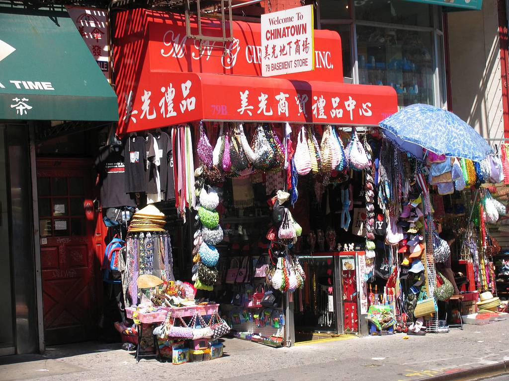 뉴욕 맨해튼의 차이나타운은 맨해튼 브리지와 브루클린 브리지 근처 맨해튼 남쪽에 있다. 어느 도시보다 맨해튼의 차이나타운은 규모가 크고 중국인들의 경제적 파워를 보여주는 곳이다. 미국 주요 도시에도 어김없이 모두 차이나타운이 있지만, 그중 뉴욕의 차이나타운이 가장 크다고 한다. 로어 맨해튼(Lower Manhattan) 지역에 자리 잡고 있다. 맨해튼을 동서로 달리는 Canal St. 와 교차하는 Mott St. Bayard St. 그리고 Pell St.의 중심에 위치한다. 여기가 과연 미국의 뉴욕인가 할 정도로 정말 중국적이다. 보통 미국에서는 전혀 볼 수 없는 길거리 좌판이라든가 골목 골목마다 다닥다닥 붙은 아파트 등 여지없는 중국의 모습을 그대로 옮겨다 놓은 모습이다.