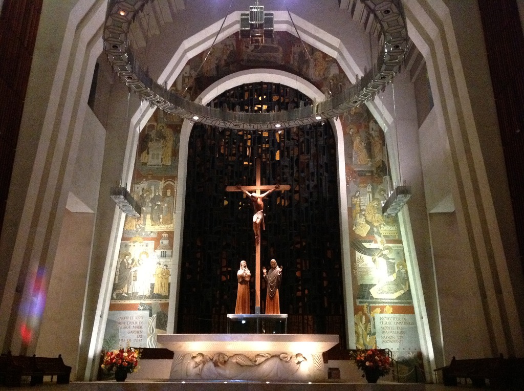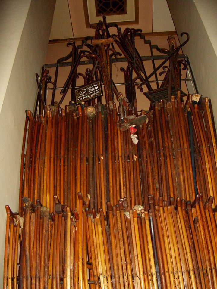 성당 내부는 개방형 구조로 밝게 불을 밝혀 놓았다. 각이 진 아치가 신랑을 따라 죽 이어지며, 색색의 조명이 높은 천장에 생기를 더한다. 앙드레 수사는 생전에 치유력이 있는 것으로 명성이 높았으며 나중에 성인의 반열에 올랐다고 한다. 성당 안을 둘러보면 그의 특별한 재능을 기념하여 벽에 목발이 걸려 있는 것을 볼 수 있다.
