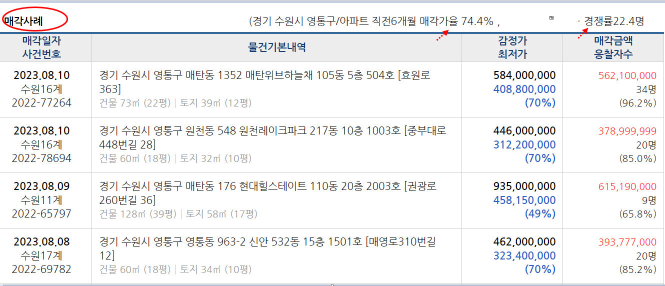 수원시 영통구지역내 저렴한 역세권아파트 찾는분 입찰최적의 매물