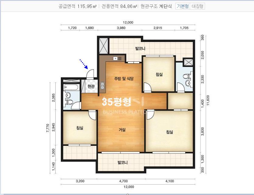 아파트 전용면적은 85㎡ (25.7평) 35평형아파트..