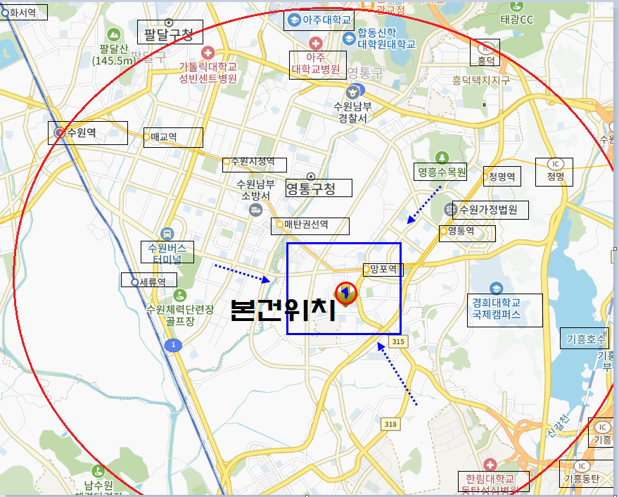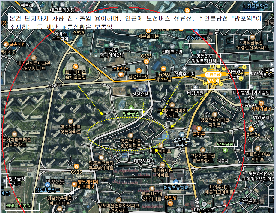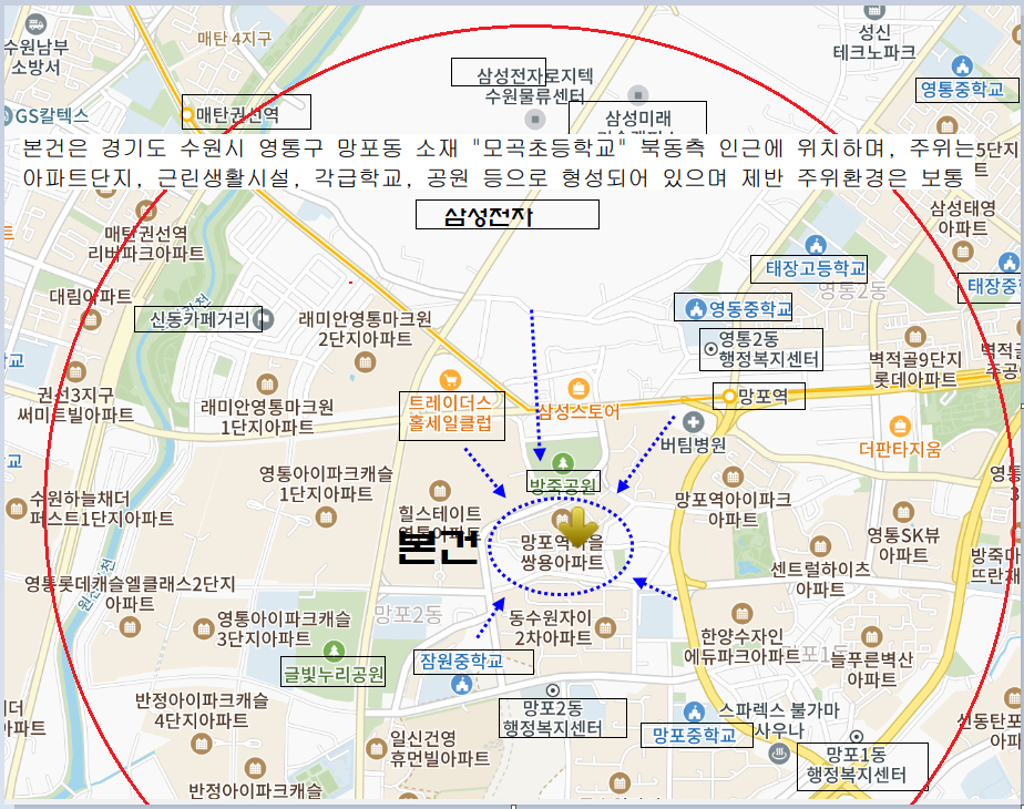 주위 상가,각종아파트단지,교육시설,전철역,삼성전자등 혼재하는