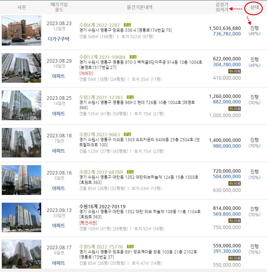 본 경매건 !! 매물 진행 및 정보알림