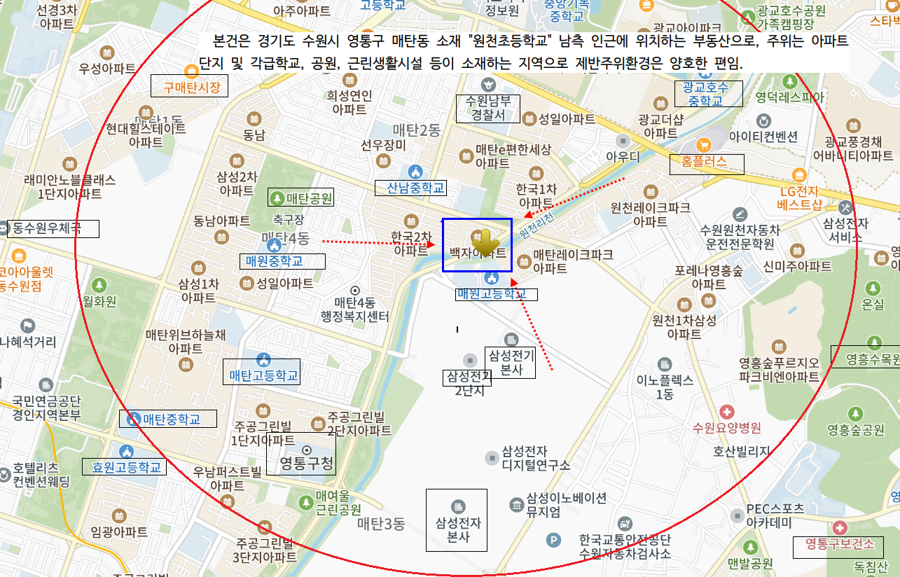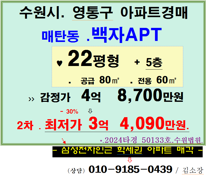 수원 영통구 학세권아파트.매탄동 삼성전자인근 백자 22평형 2차경매(24-50133)1129
