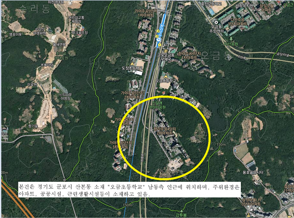 수리산역 및 오금동우체국,군포소방서,오금동주민센터,철쭉공원등이 가깝고