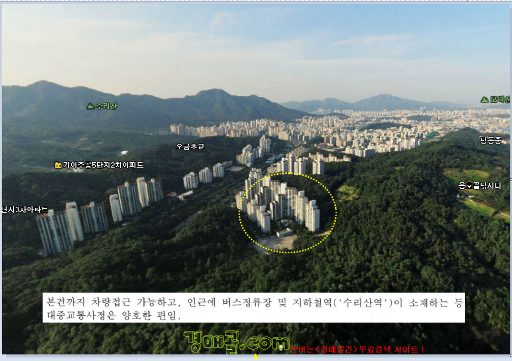 -주위 동종아파트단지,주거시설,근린시설,학교,공원,임야등 혼재하는