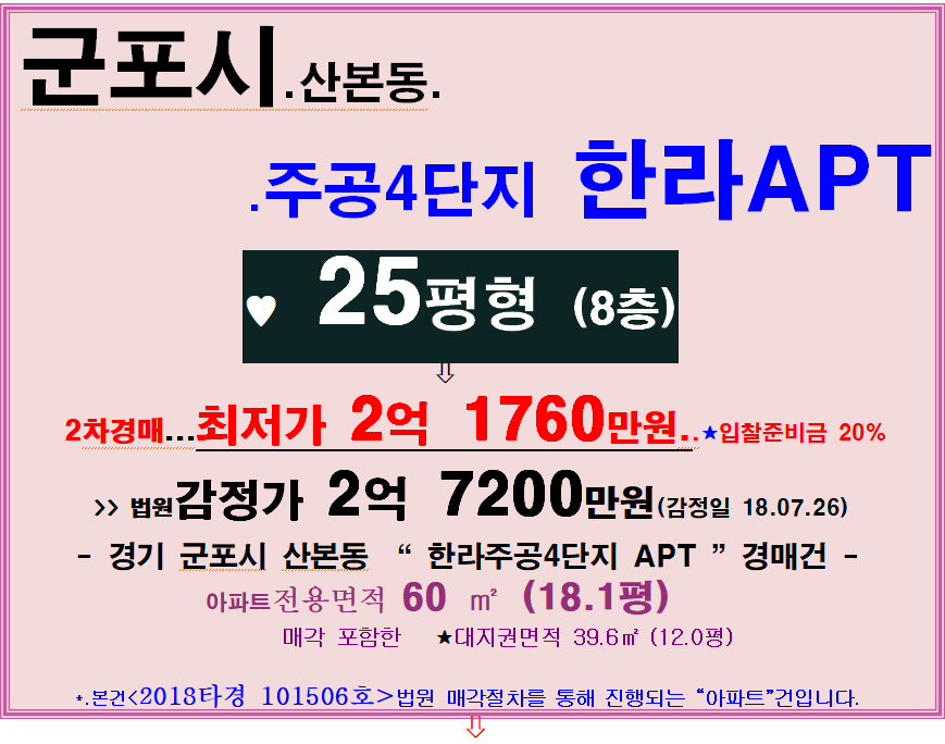 경기 군포시 산본동으로 경매로 저렴한 소형아파트찾는분 투자 최적기.