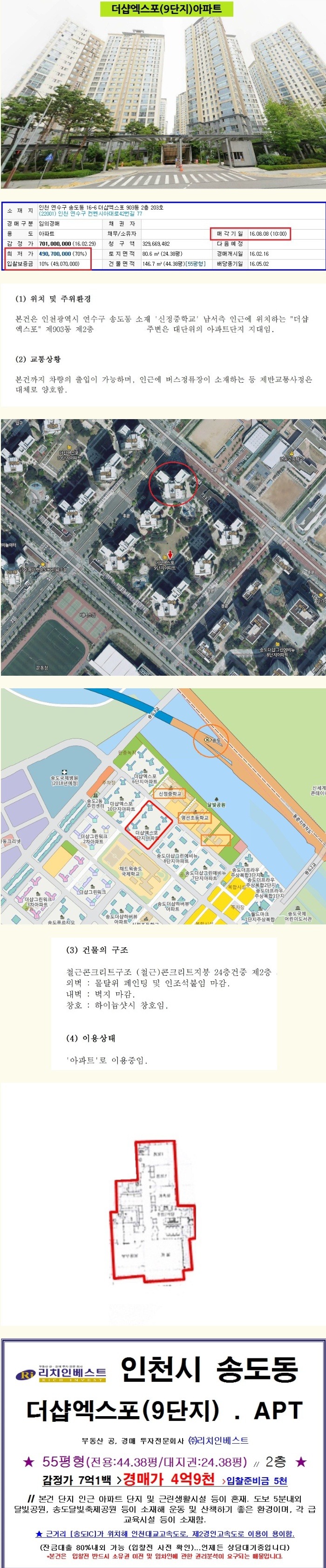 인천송도동 더샵엑스포(9단지)아파트 55평형 / 490.700.000원 / 최소입주금 1억 / 08.08 / 6035