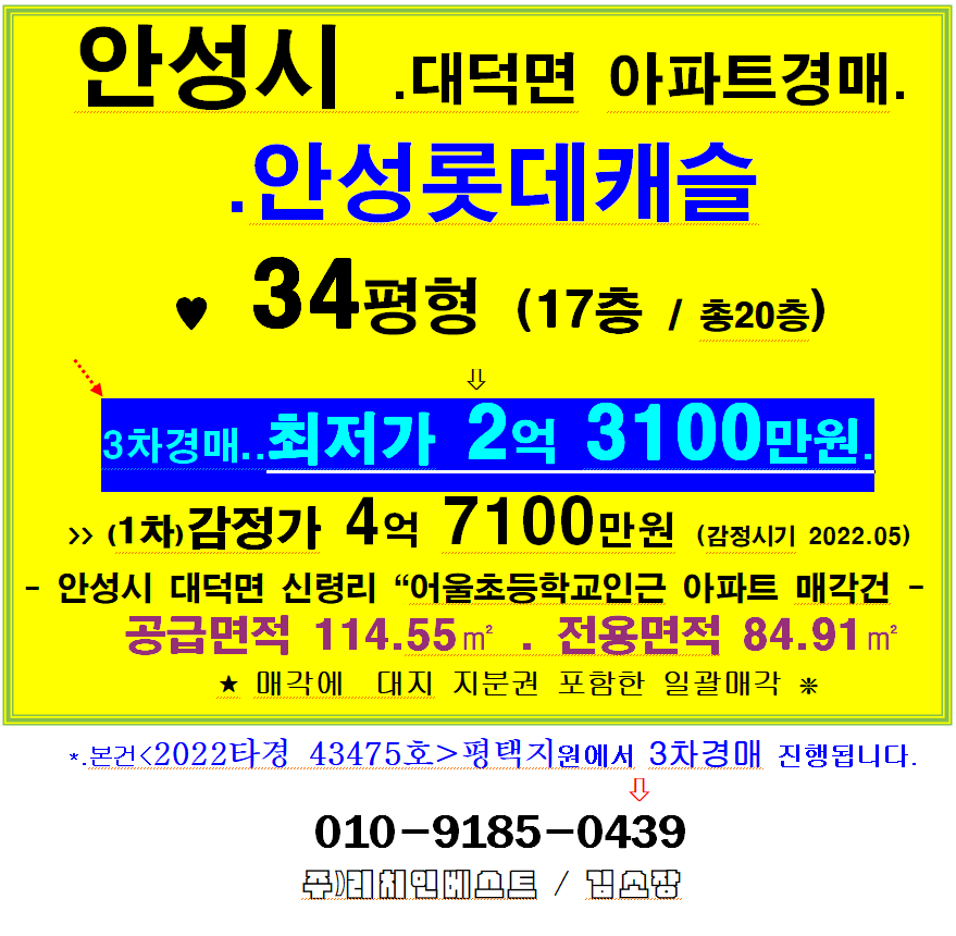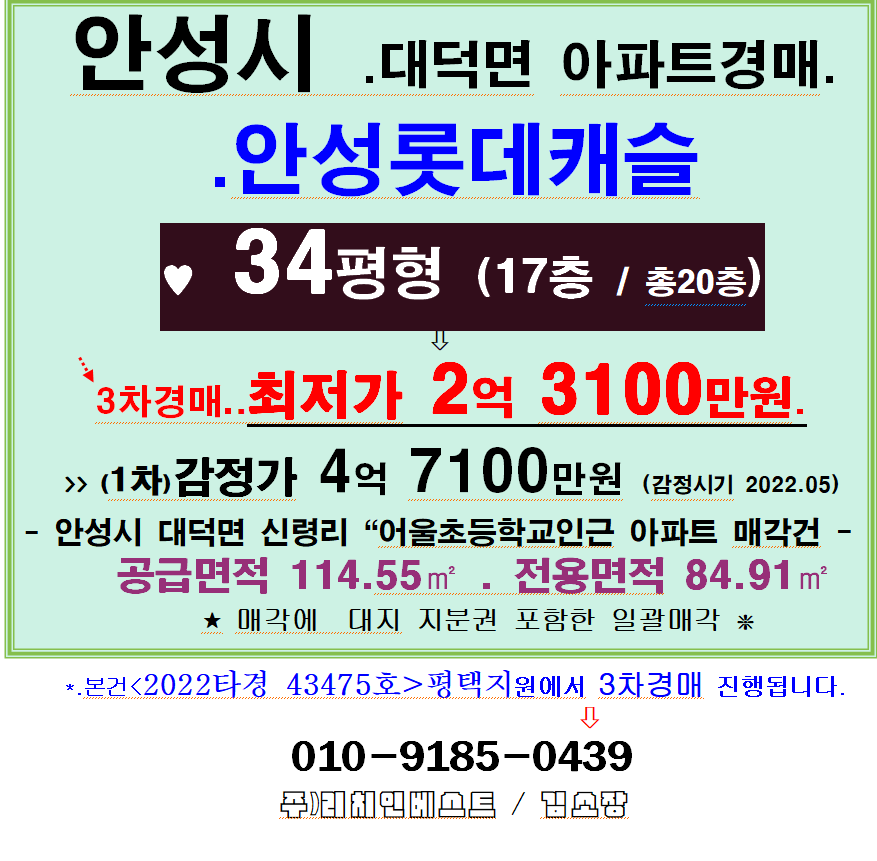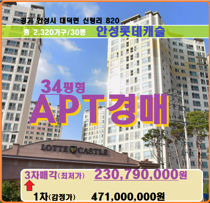 안성시아파트 3차경매건>대덕 안성롯데캐슬 34평형 매각(22타경43475)1212